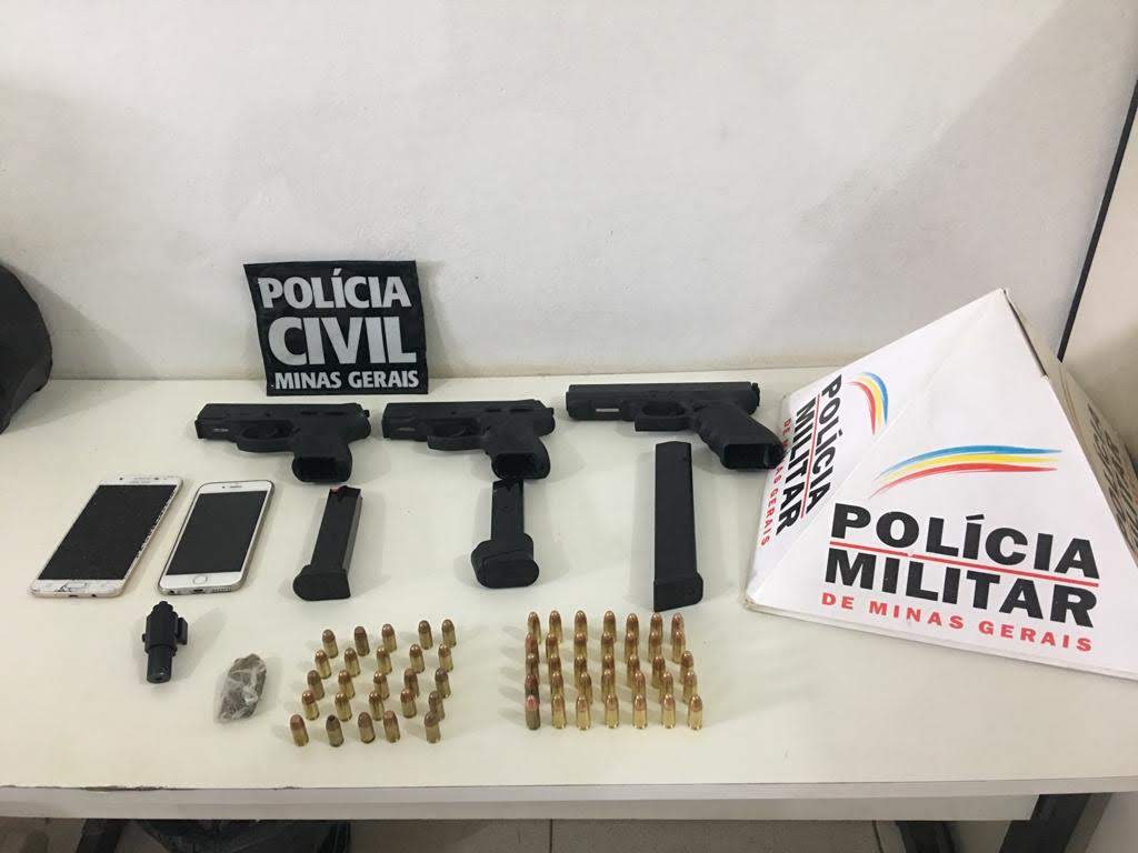 Quatro armas foram apreendidas, bem como munição e materiais para arrombar os caixas eletrônicos, além de armadilhas feitas com pregos para furar pneus e dificultar a reação dos veículos da polícia.