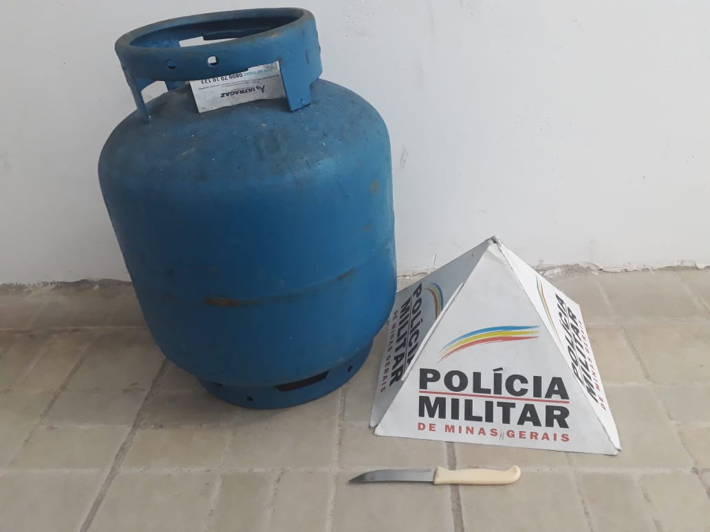 A equipe avistou o rapaz com uma sacola volumosa no ombro e o abordou. No bolso do mesmo havia uma faca e, ao abrir a sacola, foi localizada uma botija de gás.