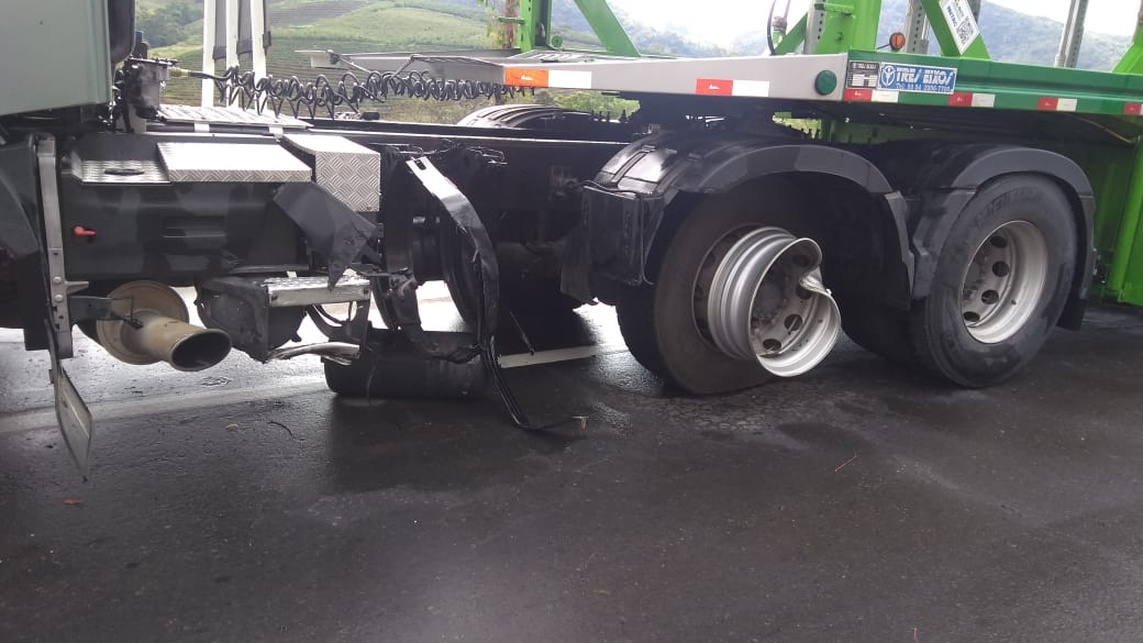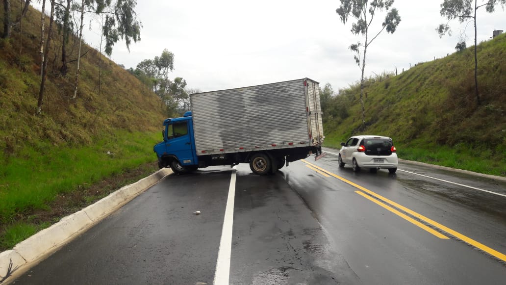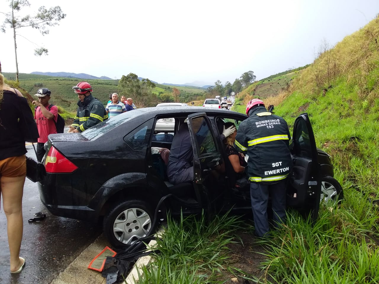 SÃO PEDRO DO AVAÍ / MANHUAÇU (MG) - O Corpo de Bombeiros e a Polícia Rodoviária Federal registraram um acidente no km 584 da BR-116, em São Pedro do Avaí, durante a chuva da tarde desta quinta-feira, 04/10.