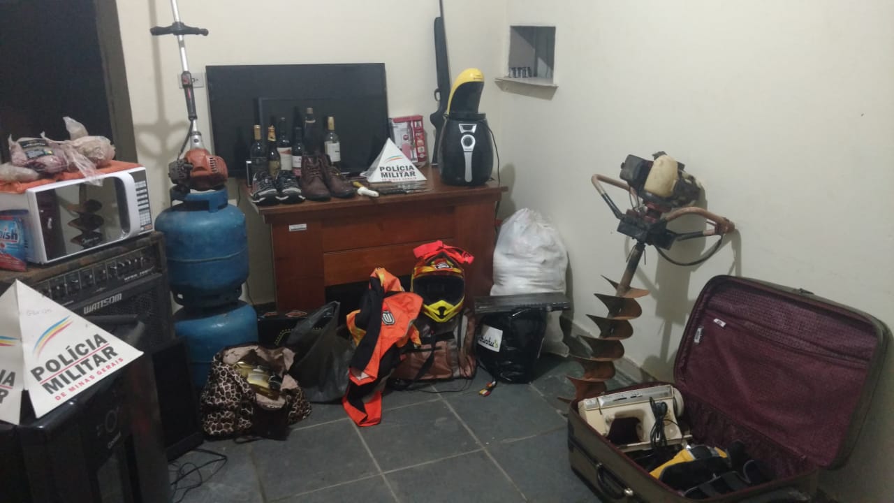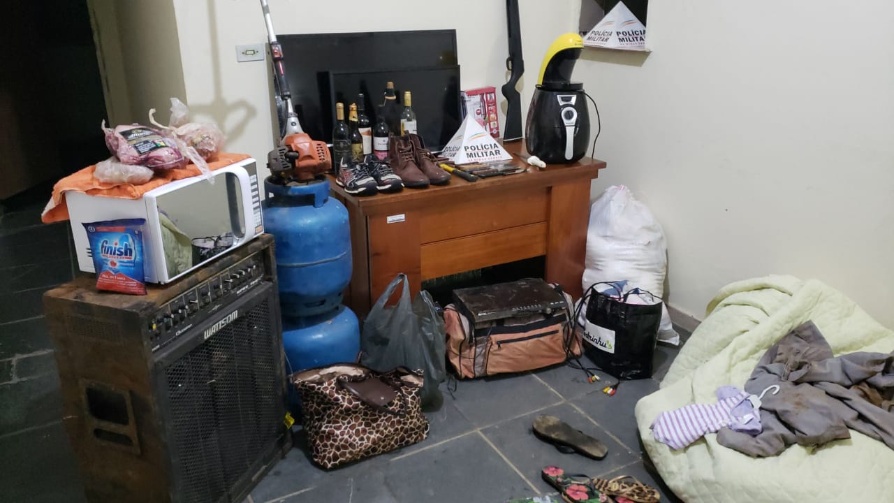 Os materiais furtados foram recuperados: uma geladeira, quatro televisões 49, 39, 32 e 28 polegadas, um perfuratriz, duas caixas de som amplificadas, um forno microondas, uma máquina de costura, um home theater, uma lixadeira, duas botijas de gás, uma fritadeira elétrica, um jogo de talheres, bebidas diversas, roupas diversas, carnes. Também apreenderam uma espingarda calibre 22 com cinco munições e um veículo Escort.