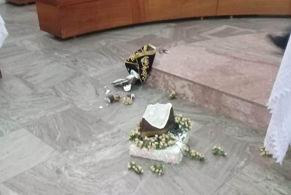 Uma das pessoas acionou a policia por volta de 16 horas. Enquanto estava preparando as atividades para a missa da tarde deste domingo a testemunha viu que um indivíduo embriagado foi até o altar e desferiu um soco contra uma imagem de Nossa Senhora Aparecida, destruindo-a. Após o ato, o autor fugiu do local sentido bairro Petrina.