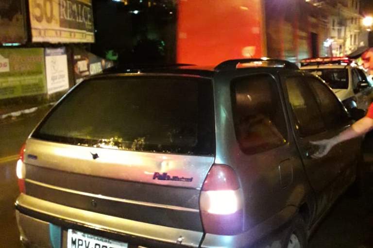 Após ser feita a abordagem, os policiais verificaram que o carro está com licenciamento atrasado desde 2015. Além disso, o motorista é inabilitado e possui passagens por roubo, furto e homicídio.