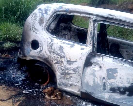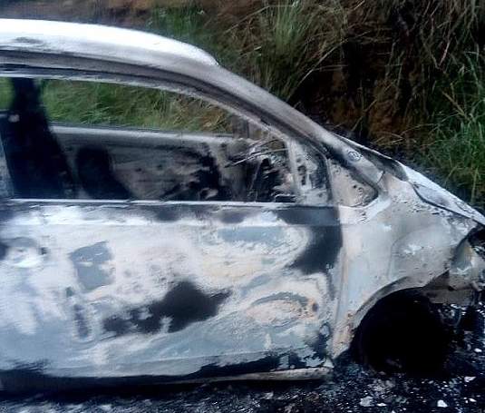 ALTO JEQUITIBÁ E DIVINO (MG) - Uma equipe da Polícia Militar Divino localizou um carro totalmente queimado na manhã de quinta-feira (18/10). O veículo foi abandonado e incendiado próximo a estrada que dá acesso à comunidade de Fortaleza.