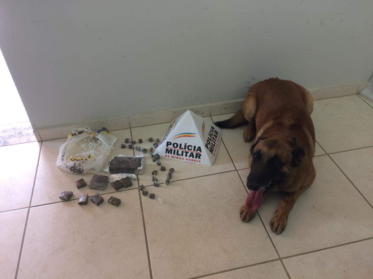 MANHUAÇU (MG) - A Polícia Militar de Manhuaçu apreendeu drogas durante ação com o apoio do cão de faro Titan no bairro Santa Luzia, nesta quinta-feira, 1/11.