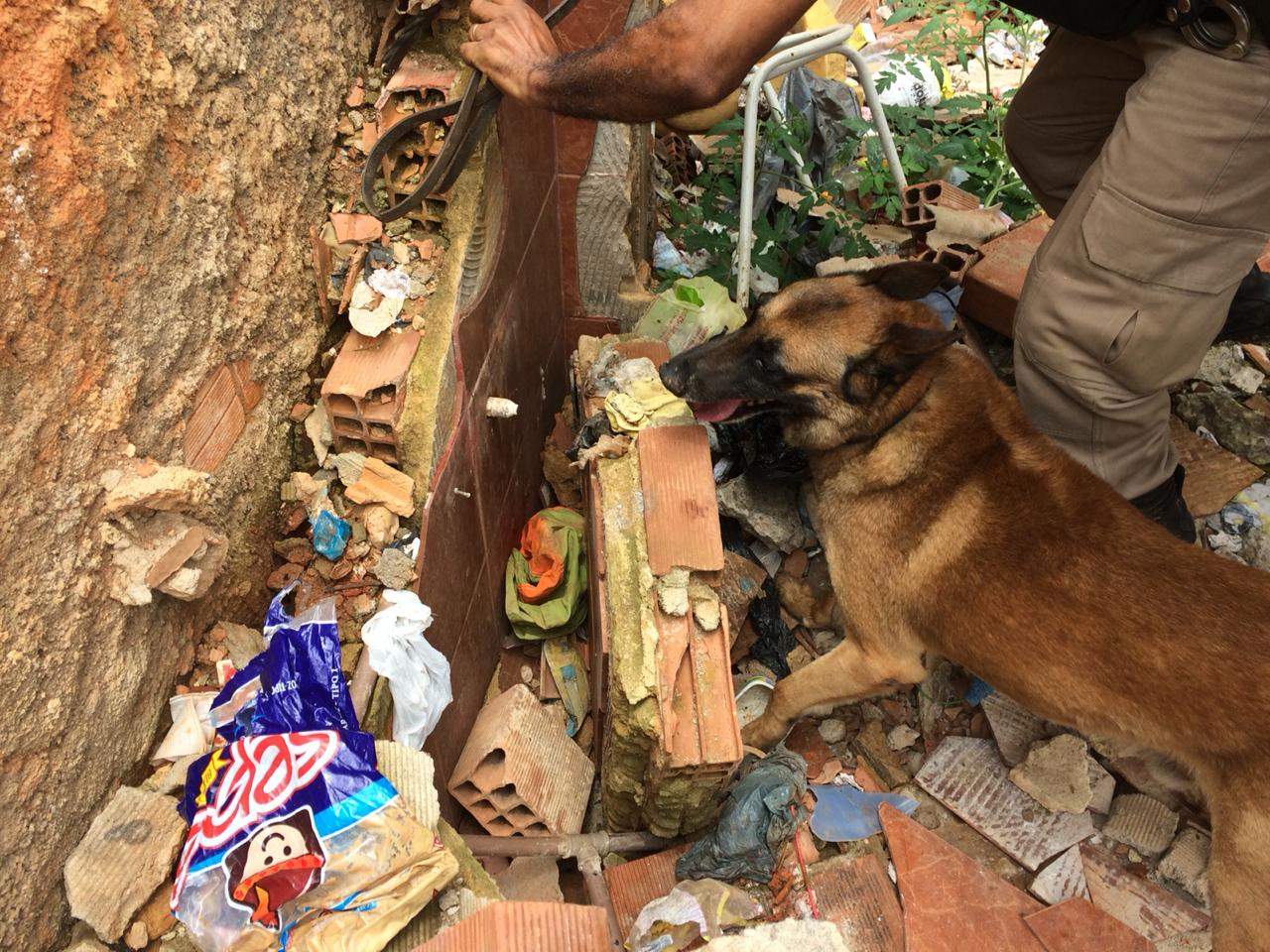 O lote vago citado na denúncia trata-se de um terreno com muitos escombros de uma residência, local com bastante lixo e entulho. Devido à dificuldade de varredura do local, o cão de faro Titan, foi levado para fazer as buscas.