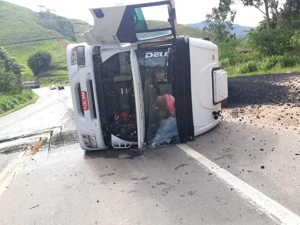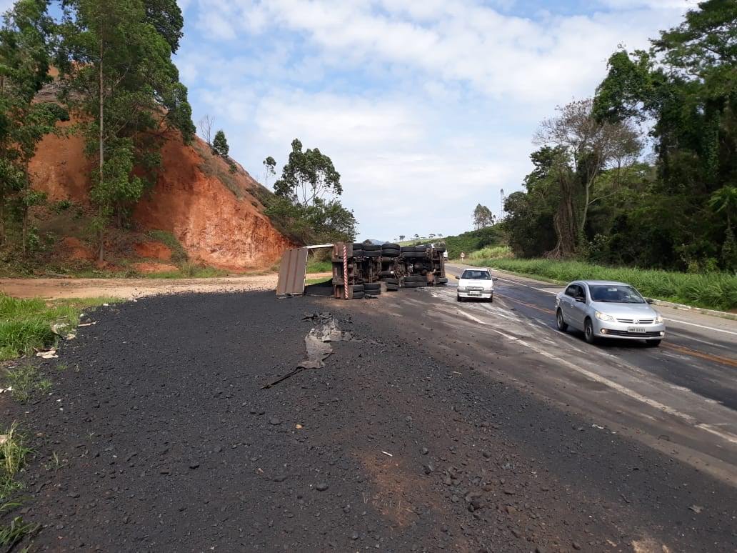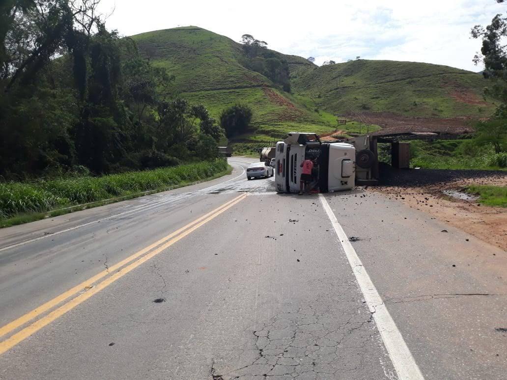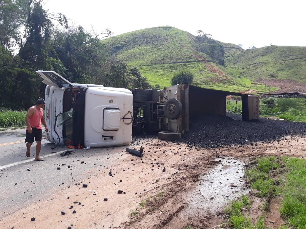 Uma carreta tombou na manhã de sexta-feira, 02/11, no km 63 da BR-262, entre Santo Amaro de Minas e Matipó, no local conhecido como curva da saibreira.