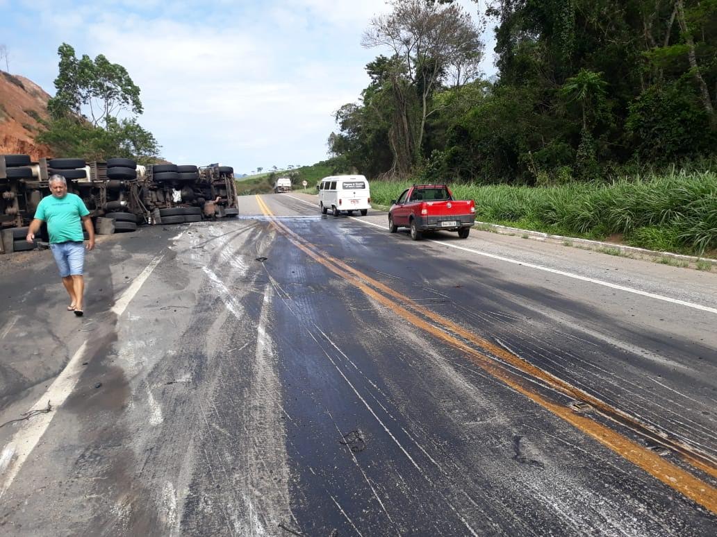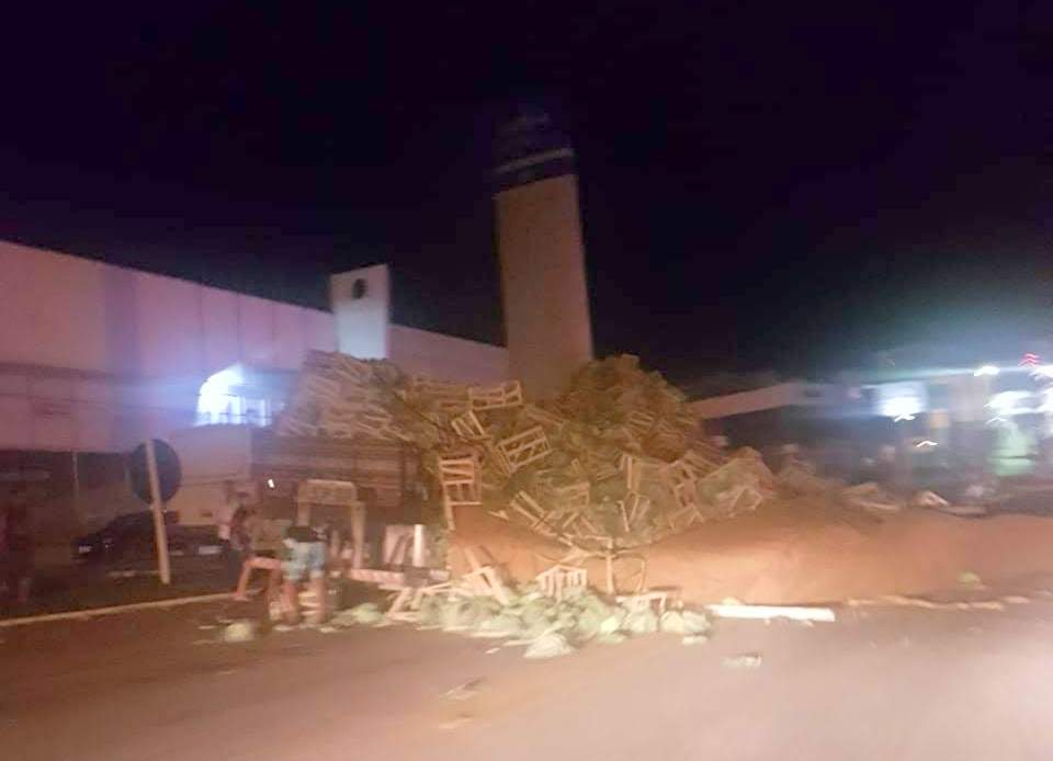 O caminhão estava passando no trecho, por volta de 23 horas. Felizmente ninguém se feriu.