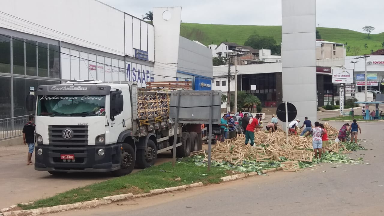 Na noite desta sexta, no Bom Jardim, em Manhuaçu, parte de uma carga de repolhos caiu na pista da BR-262.