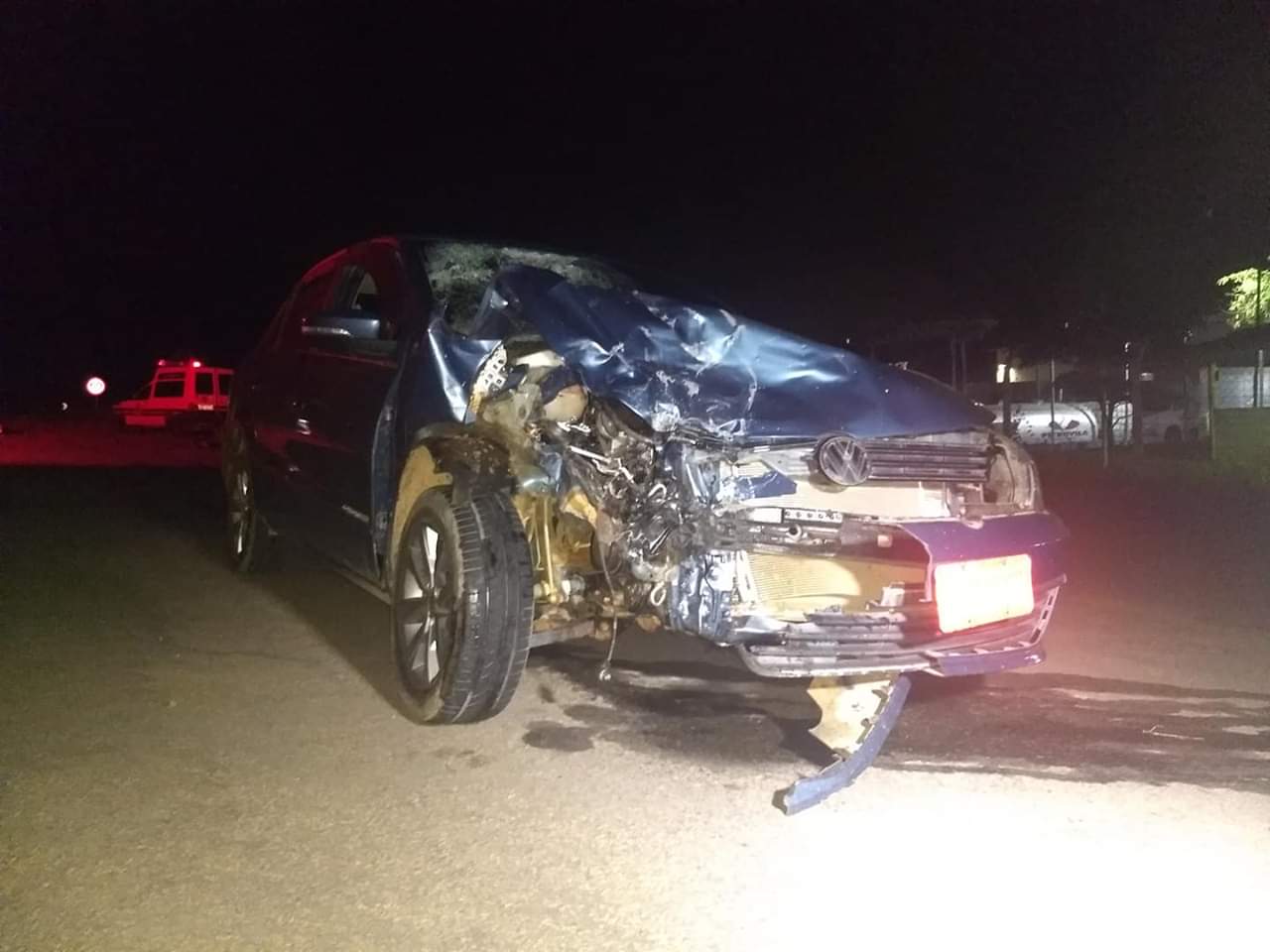 A colisão envolveu um Voyage, veículo táxi, com placas de Santa Bárbara do Leste; e uma motocicleta, também com placa de Santa Bárbara.