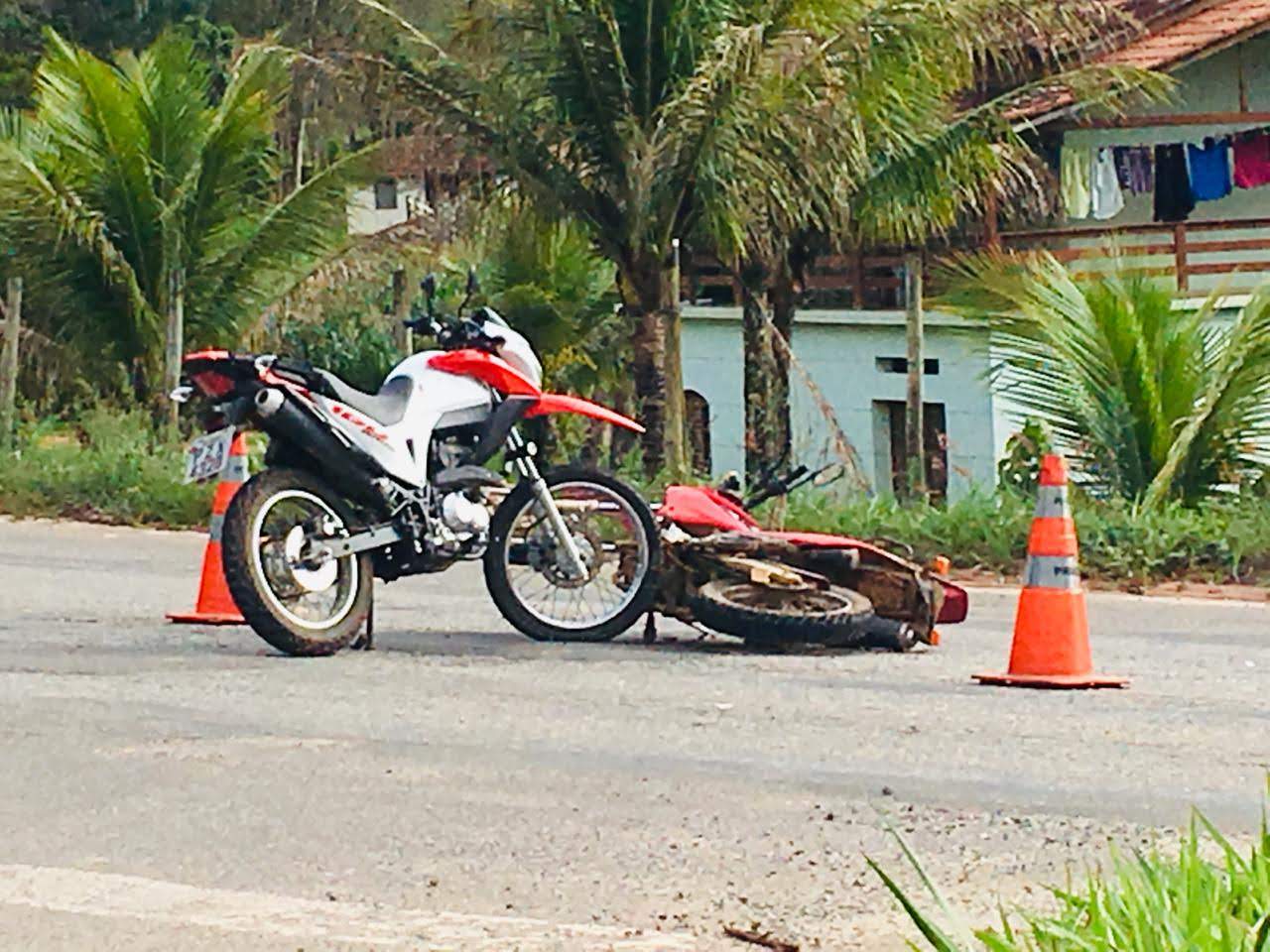 As motocicletas estavam com documentação em dia. Além do registro do acidente, foi aplicada multa ao condutor inabilitado.