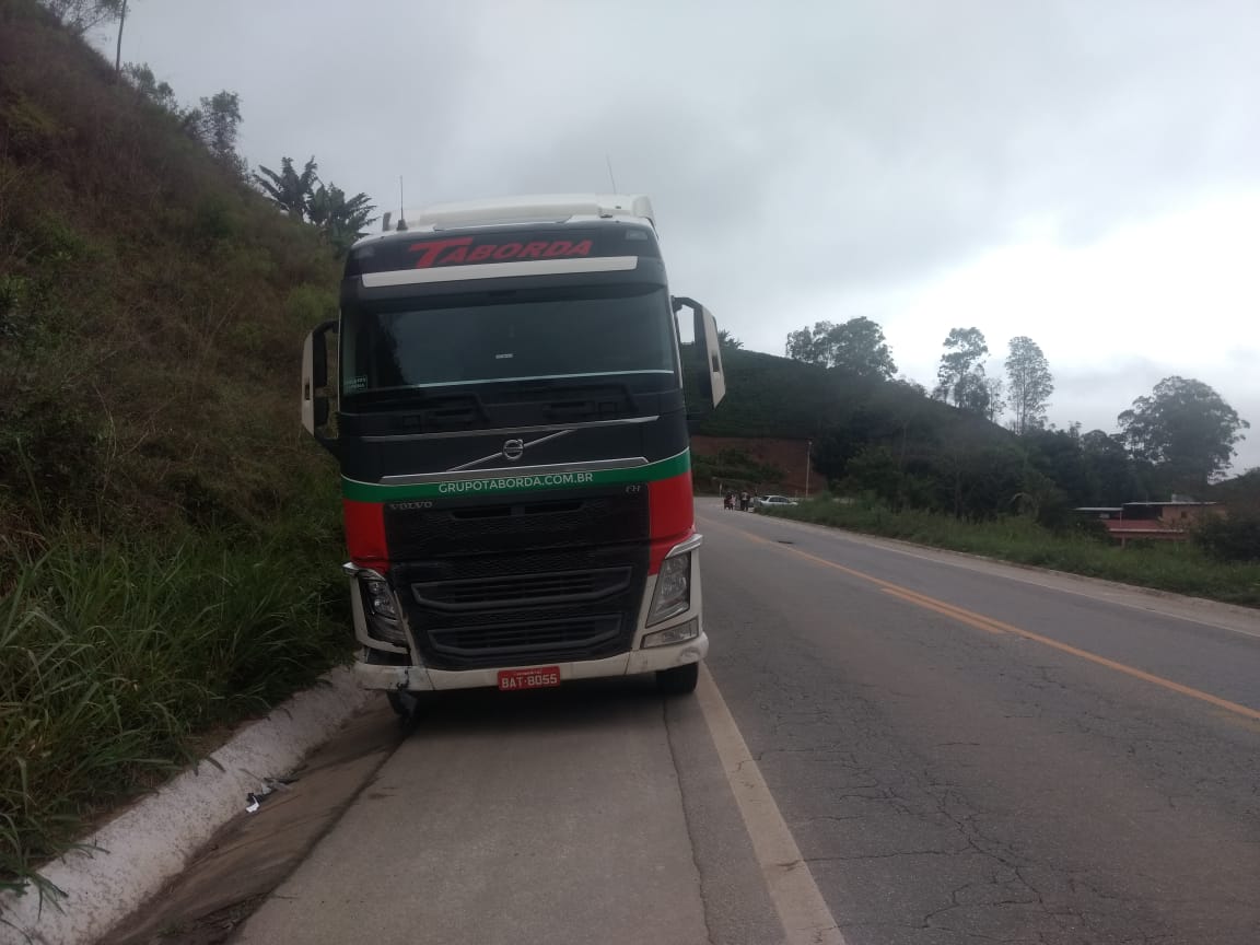 De acordo com o motorista da carreta, o veículo não fez a rotatória e foi atingido pela carreta jogando-o na lateral da rodovia.