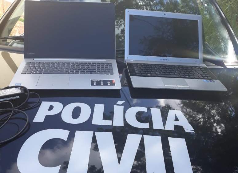 Em continuidade aos trabalhos de campo, nesta quarta, os policiais conseguiram identificar os outros dois envolvidos e recuperar dois notebooks que estavam escondidos em meio a um matagal, trecho de difícil acesso, próximo à residência dos autores.