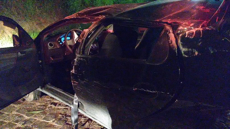 ESPERA FELIZ (MG) - Um automóvel Celta capotou de um barranco de cerca de cinco metros, vindo parar numa rua abaixo da que estava trafegando, no início da madrugada de quinta-feira (29/11), em Espera Feliz.