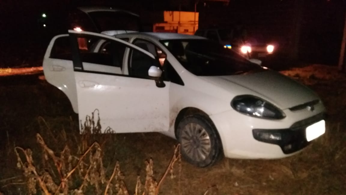 Ao perceberem a aproximação da viatura, o motorista fugiu em alta velocidade e conseguiu chegar ao distrito de Vilanova. Eles abandonaram o carro na rua Eugênia Fialho e fugiram por uma lavoura de café. Apesar do cerco, não foram encontrados.