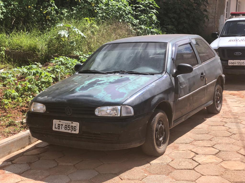 Segundo a Polícia Militar, o Gol, cor verde, placa LBT-8596, Muriaé/MG, estava estacionado na rua José Bertolace de Barros.
