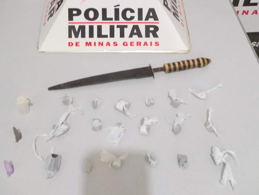 IPANEMA (MG) - Dezoito buchas de maconha, um pino cheio com cocaína, dois pinos vazios e um punhal foram apreendidos durante operação antidrogas, na Rua Antônio José Dias, na Roça Grande, em Ipanema, nesta quarta-feira, 12/12.