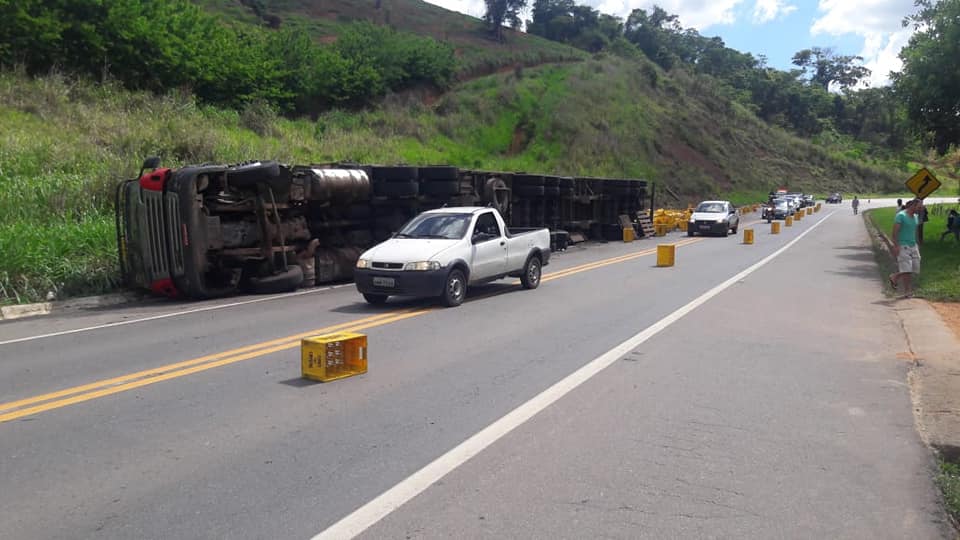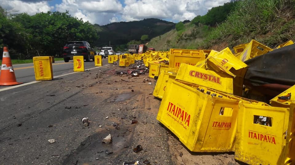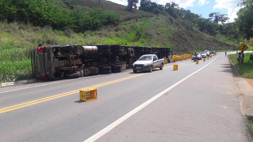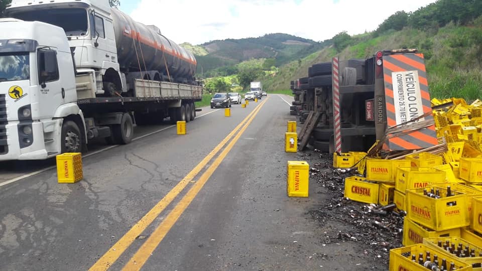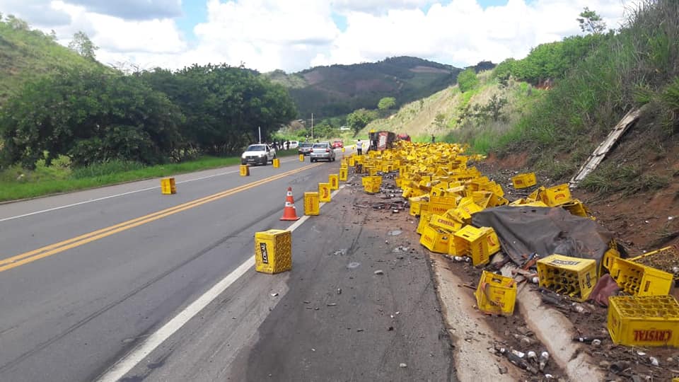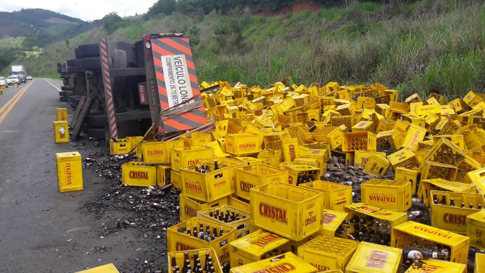UBAPORANGA (MG) - Um tombamento de carreta, com carga de cerveja, foi registrado neste sábado (15/12), na BR-116, no trecho conhecido como "Santinha", em Ubaporanga.