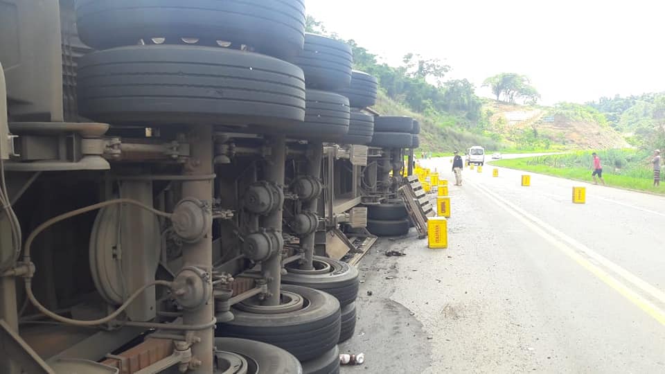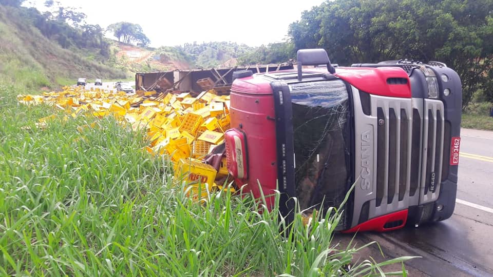 Segundo o policial rodoviário federal Vander, a carreta seguia sentido sul/norte, e ao fazer uma curva para a esquerda, em uma descida, desgovernou e tombou na lateral da pista: "A carreta está ocupando a pista, parcialmente, e o condutor sofreu lesões leves e foi socorrido. Estamos fazendo contato com as pessoas responsáveis, e faremos a limpeza da pista. Posteriormente será feita a retirada da carga, dos vidros quebrados e etc."