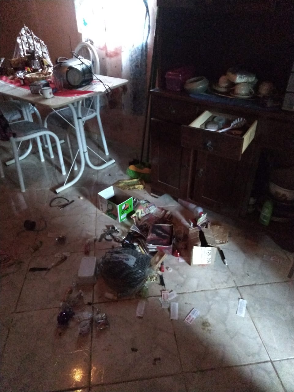 Segundo a ocorrência, por volta de 21 horas, os três bandidos chegaram armados e arrombaram a porta dos fundos da residência. Eles permaneceram duas horas na casa e reviraram todos os móveis.