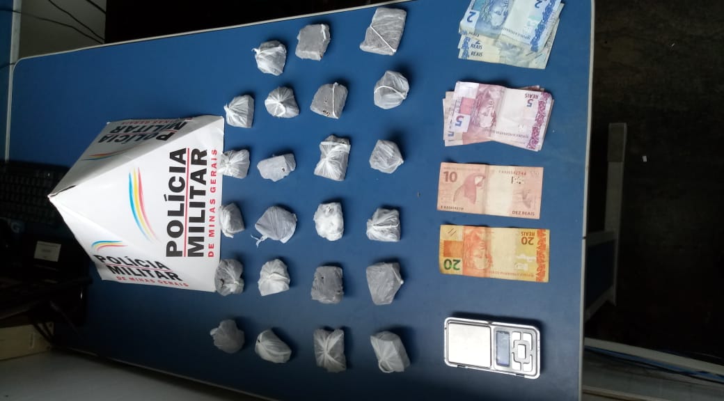 Com isso, o rapaz foi preso em flagrante por crime de tráfico de drogas e encaminhado para a Delegacia de Polícia Civil com os materiais apreendidos.