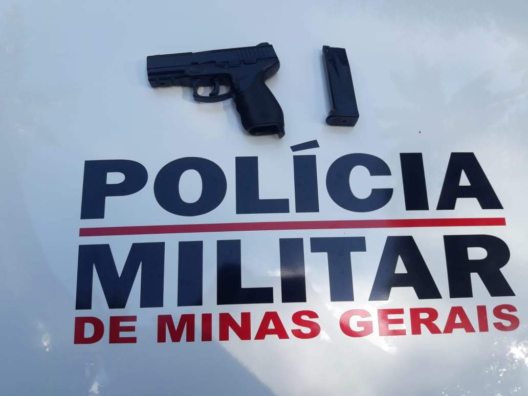 Os militares encontraram um simulacro de arma de fogo (Air-Soft) na cintura dele. A arma estava sem a marcação nas cores laranja, fluorescente ou vermelha, que é obrigatória para que não seja confundida com uma verdadeira.