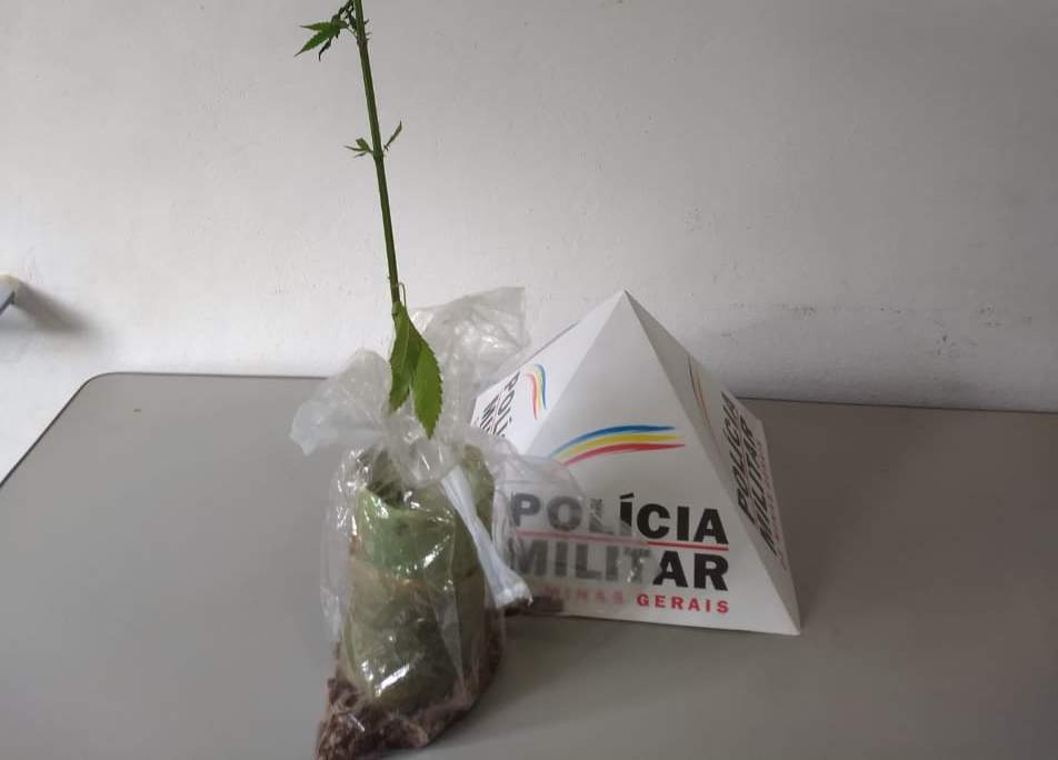 A atitude acabou foi despertando mais os policiais. No terreno confrontante, os policiais localizaram o pé de maconha.