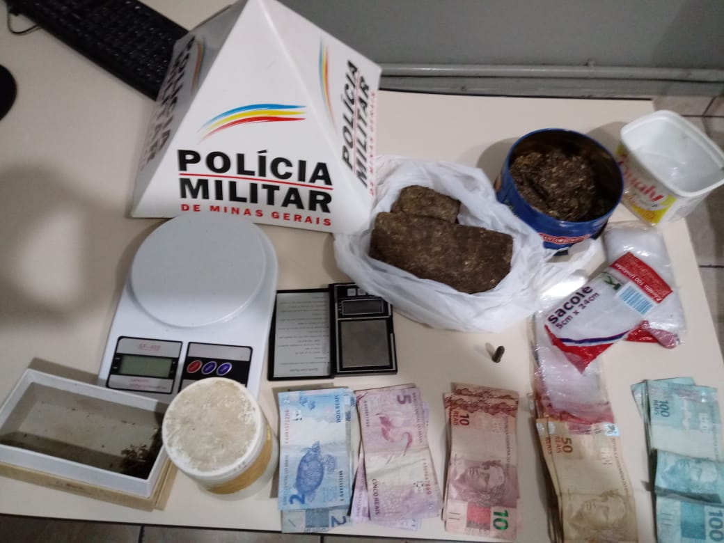 A busca pessoal na bolsa da mulher revelou um pequeno tablete de maconha. Em seguida, a equipe foi até a casa. Lá foram encontrada uma barra de maconha e três tabletes totalizando aproximadamente meio quilo; uma munição calibre 32; duas balanças de precisão; uma porção de sementes de maconha; três pacotes contendo cem unidades de sacolinhas plásticas; um aparelho celular e a quantia de R$ 1.037.00.