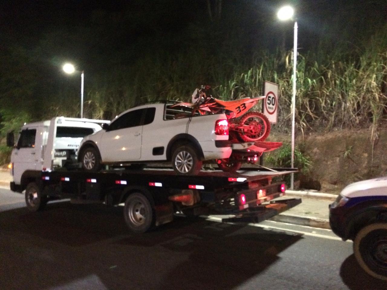 A PM apreendeu a motocicleta, o Saveiro, um revólver com cinco munições e um canivete. Os envolvidos foram encaminhados para a Delegacia de Polícia Civil.