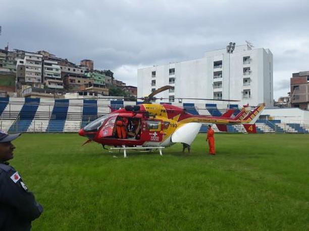 MANHUAÇU (MG) - A presença de um helicóptero do resgate do Corpo de Bombeiros na tarde desta terça-feira, 05/02, no Estádio Municipal Juscelino Kubistcheck, chamou a atenção da população de Manhuaçu.