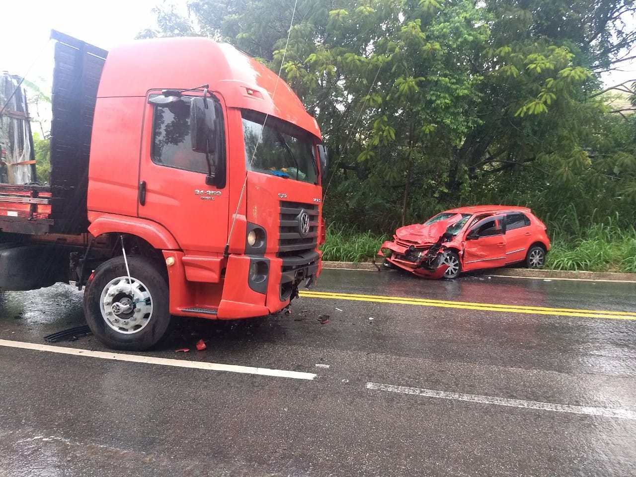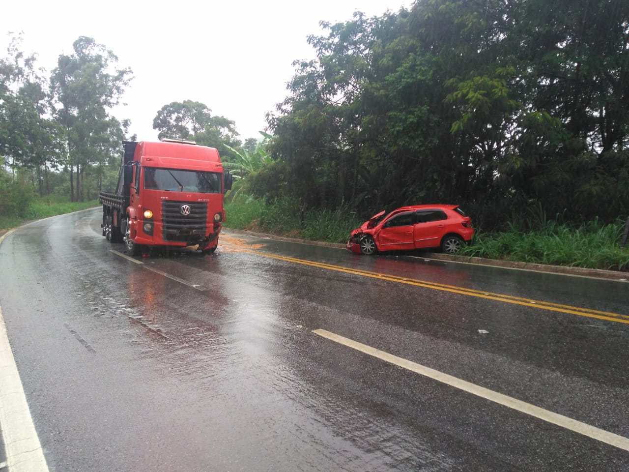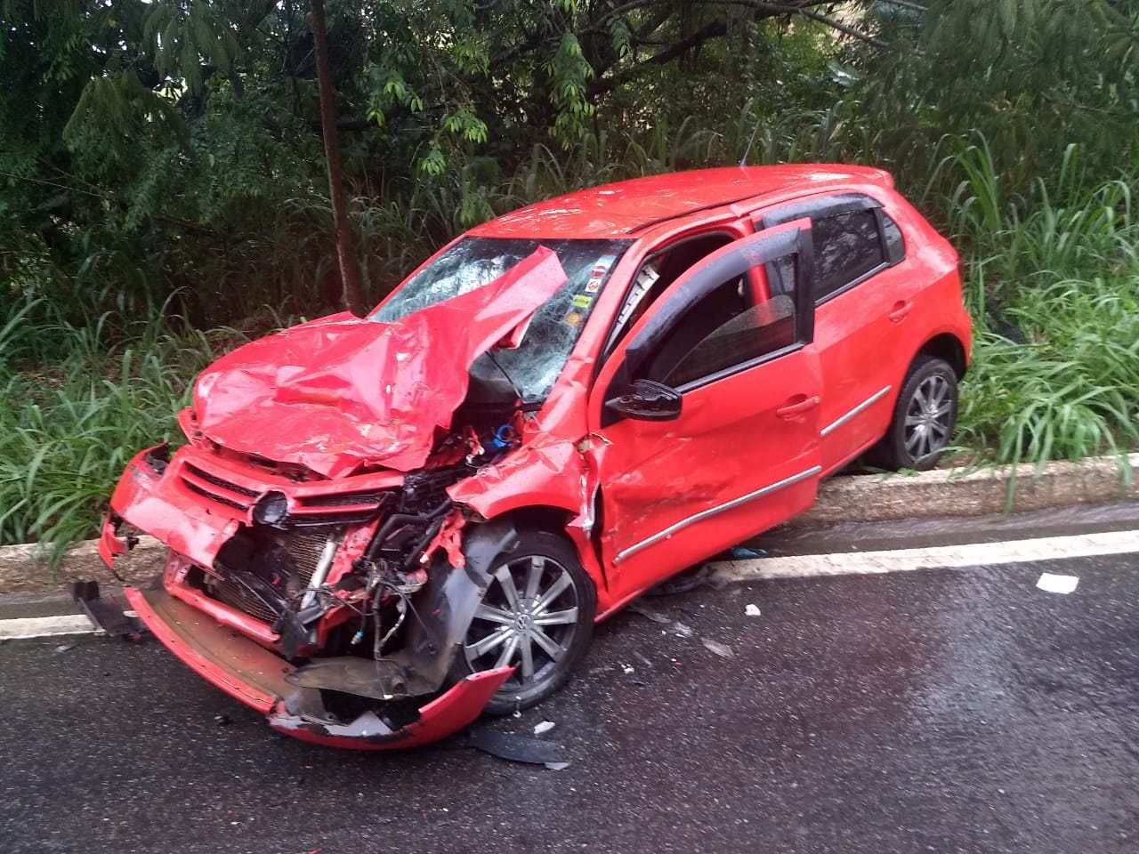 O acidente aconteceu por volta das 14h, no local conhecido como curva do boi, próximo ao distrito de Celina. Com o impacto da batida, o carro foi parar no acostamento e ficou com a frente completamente destruída.