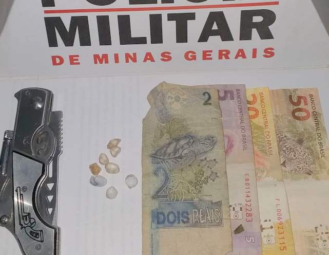De acordo com o registro da PM, a equipe foi acionada, onde o solicitante relatou estar sofrendo ameaça dos dois autores, então os policiais foram até à residência do mesmo, momento que o envolvido de 31 anos chegou ao local com ânimos exaltados, sendo surpreendido pelos militares e submetido a busca pessoal, onde foi encontrado em posse dele, três pedras de crack, um canivete, e a quantia de R$77,00 em moeda corrente.