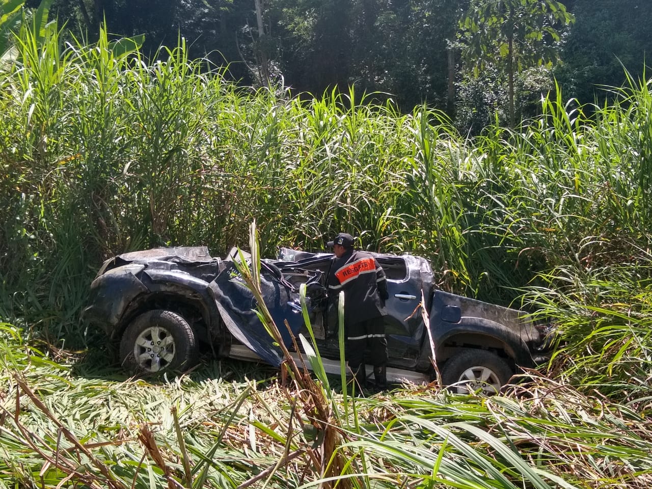 Após a batida, a picape capotou e caiu em um matagal. Josué Santana da Costa, de 44 anos, foi socorrido pelo Corpo de Bombeiros Anjos do Resgate. A socorrista Viviane Mota informou que Josué foi levado para a Unidade de Pronto Atendimento (UPA) de Caratinga com cortes no rosto e cabeça, e suspeita de hemorragia interna e Traumatismo cranioencefálico.