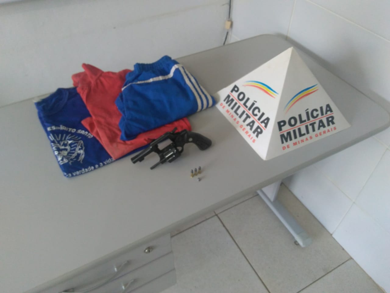 Foi apreendido o revólver e quatro munições, além de duas camisas e uma calça.