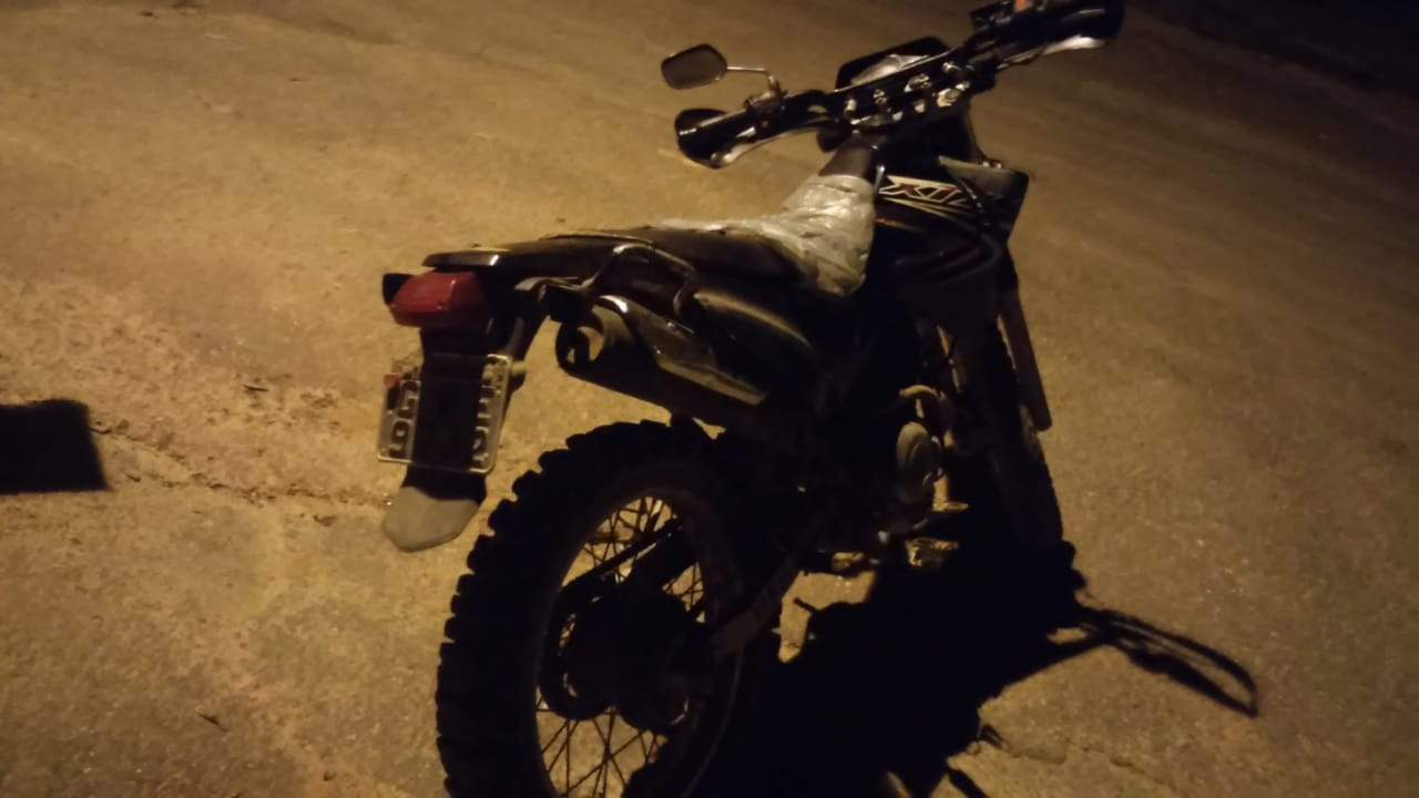 Durante rastreamento, a Polícia Militar conseguiu localizar a motocicleta, que foi apreendida.