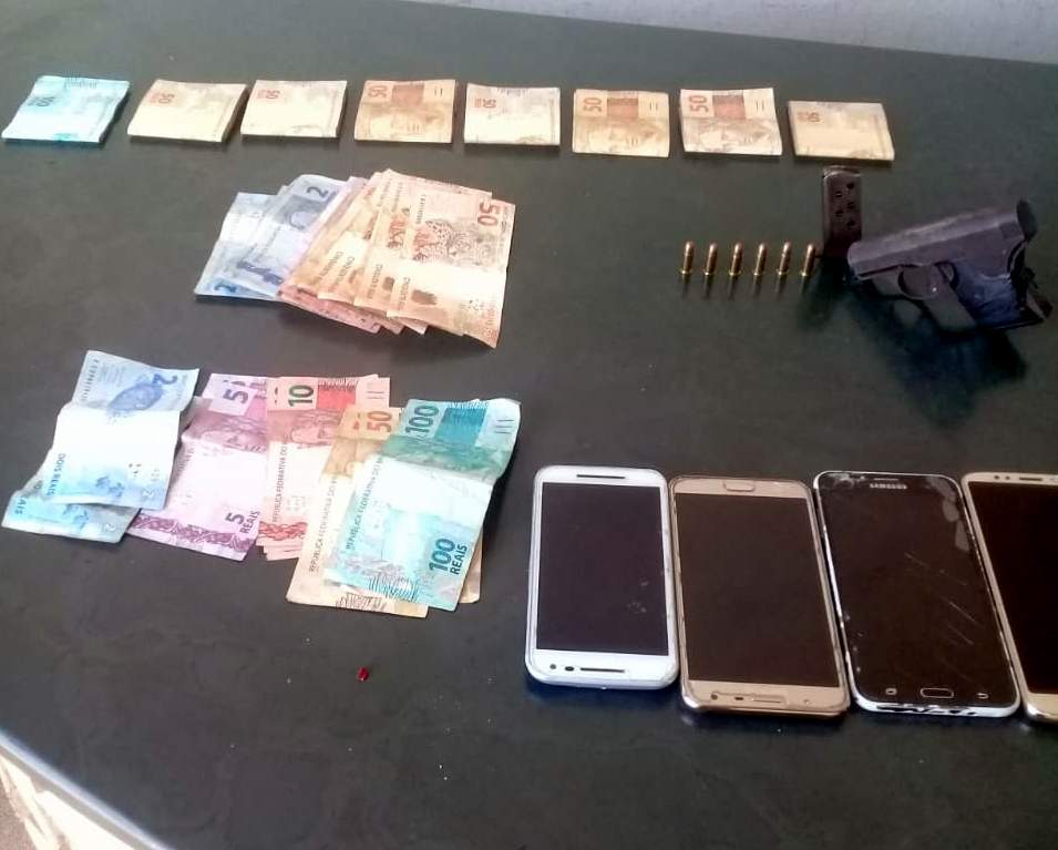 No interior do Voyage, a PM encontrou uma pistola 635 e cerca de oito mil reais em dinheiro. Ninguém explicou a motivação de estarem com tal quantia em espécie no veículo e nem admitiu se proprietário da arma.