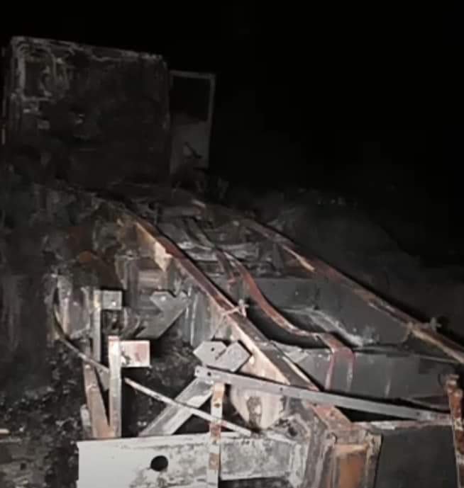 DOM CORRÊA / MANHUAÇU (MG) - Um caminhão foi totalmente destruído pelas chamas na BR-116 em Dom Corrêa, distrito de Manhuaçu, no início da noite de sexta-feira, 08/03.