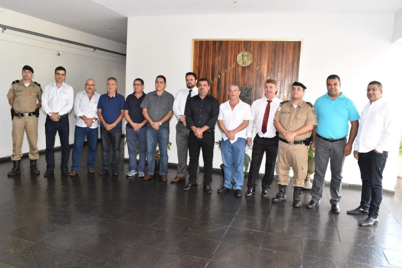 MANHUAÇU (MG) - Na manhã desta segunda-feira, 18/03, aconteceu uma reunião entre o Comandante do 11° Batalhão de Polícia Militar, Tenente-Coronel Franco, o Delegado Regional da Polícia Civil, Doutor Carlos Roberto, o Presidente da Câmara de Manhuaçu, Vereador Juninho Linhares, o Presidente da Agência de Desenvolvimento Econômico e Social do Caparaó (ADESC), André Farrath, e empresários de Manhuaçu e região.