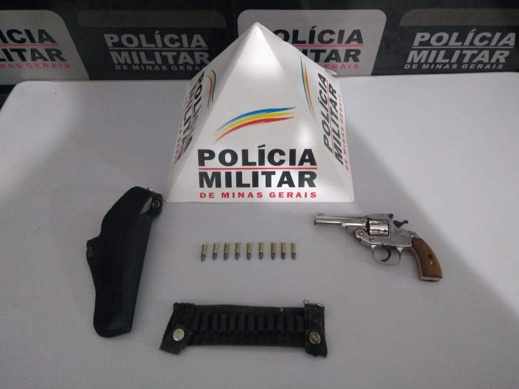 Após buscas no interior do veículo foi localizado um revólver calibre 22, 09 munições e um coldre.