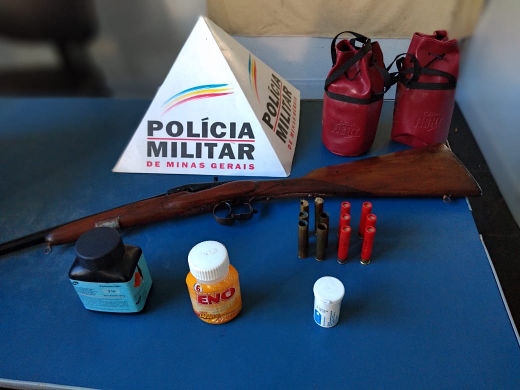 MANHUAÇU (MG) - Na tarde desta segunda-feira, 08/04, a Polícia Militar de Manhuaçu recebeu informações que um rapaz de 19 anos estaria com uma arma de fogo no interior de sua residência, no bairro Petrina.