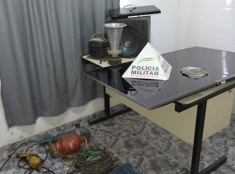 Com o auxílio de câmeras de monitoramento foi possível identificar os autores e ao localizar um autor de 21 anos e um menor infrator de 15 anos, estes confirmaram ter praticado o furto e indicaram o terceiro autor de 24 anos e ao serem verificados locais indicados pelos autores e residências dos mesmos foram encontrados R$ 168,00, 01 TV de 55 polegadas, 01 binóculo, 01 furadeira, 01 serra elétrica, 01 esmeril, 01 caixa de som, alto falantes, corneta e aparelho de DVD, como alguns produtos foram localizados no interior do veículo do autor de 24 anos, levando a crer que ele estava sendo utilizado para prática delituosa, o veículo também foi apreendido juntamente com o material.