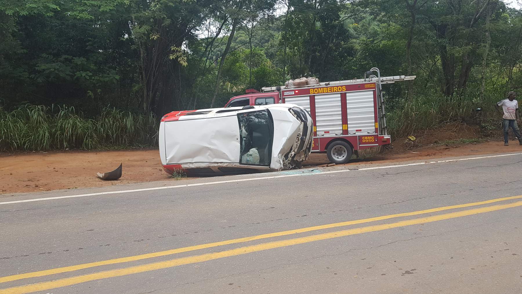 Segundo Sargento Everton, dos Bombeiros de Manhuaçu, foram três vítimas do Uno de Luisburgo e duas vítimas do Gol de Alto Jequitibá.