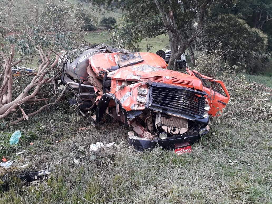 Com a batida dos dois veículos, o motorista do caminhão perdeu o controle da direção, saiu da pista e bateu numa árvore, arrancando-a completamente. “Apesar da gravidade do acidente e a destruição da cabine do caminhão, o motorista felizmente sofreu ferimentos leves”, completa Sargento Roseni.