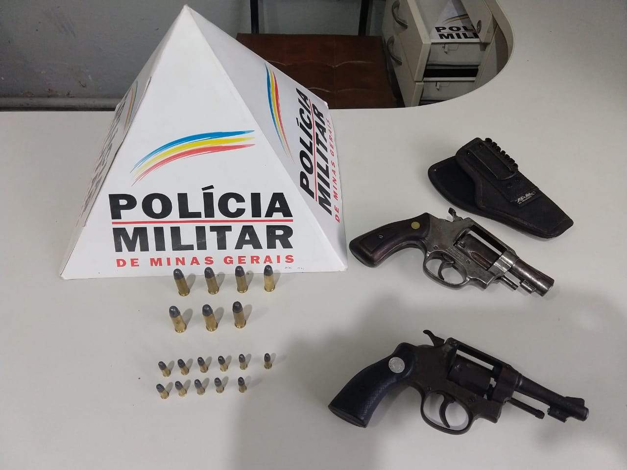 A equipe policial ao realizar as buscas no interior do quarto do autor de 53 anos localizou 01 revólver calibre 38, 07 munições do mesmo calibre, 01 revólver calibre 22, 11 munições do mesmo calibre e 01 coldre na cor preta.