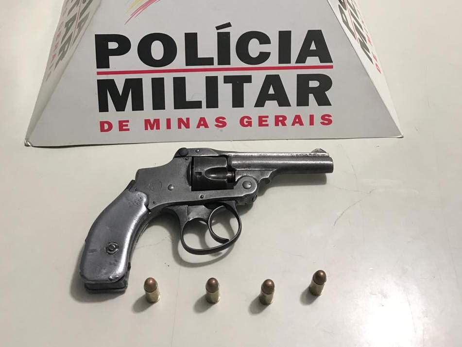 O revólver calibre 32 com quatro munições intactas foi apreendido e conduzido com o autor para a delegacia de Polícia Civil.