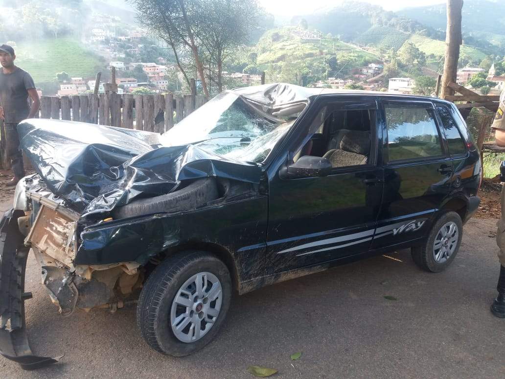 MANHUAÇU (MG) - A Polícia Militar Rodoviária registrou uma colisão entre um Fiat Uno e uma motocicleta Honda CG 150 na estrada de Ponte Silva para Luisburgo (LMG-838) na tarde desta terça-feira, 23/04.