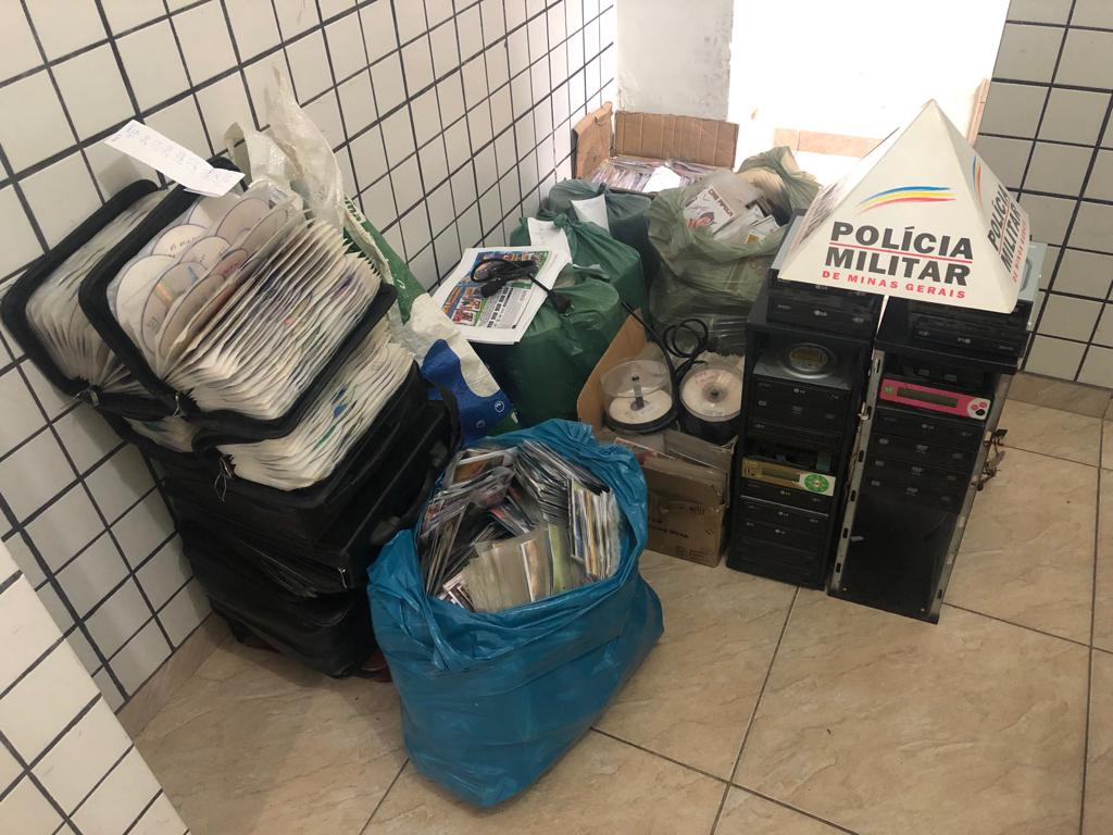 Após a denúncia, a PM deparou com outros materiais no local. Conseguiu apreender grande quantidade de CDs e DVDs piratas.