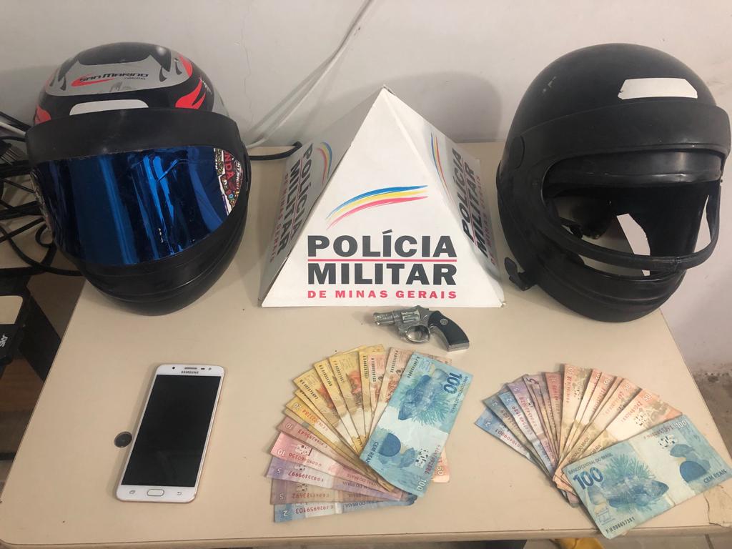 Com os envolvidos foram localizados R$ 834,00, 01 aparelho celular, 01 simulacro de arma de fogo e a motocicleta da vítima.