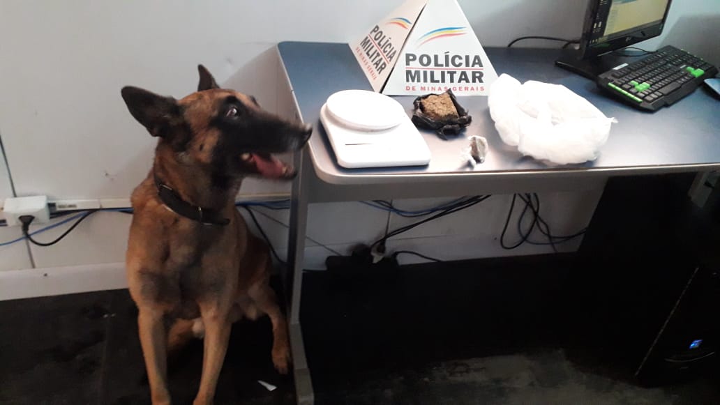 MANHUAÇU (MG) - Com ajuda do cão farejador Titan, equipe da Polícia Militar apreendeu drogas no bairro Santa Terezinha, em Manhuaçu, na tarde desta segunda-feira, 29/04.