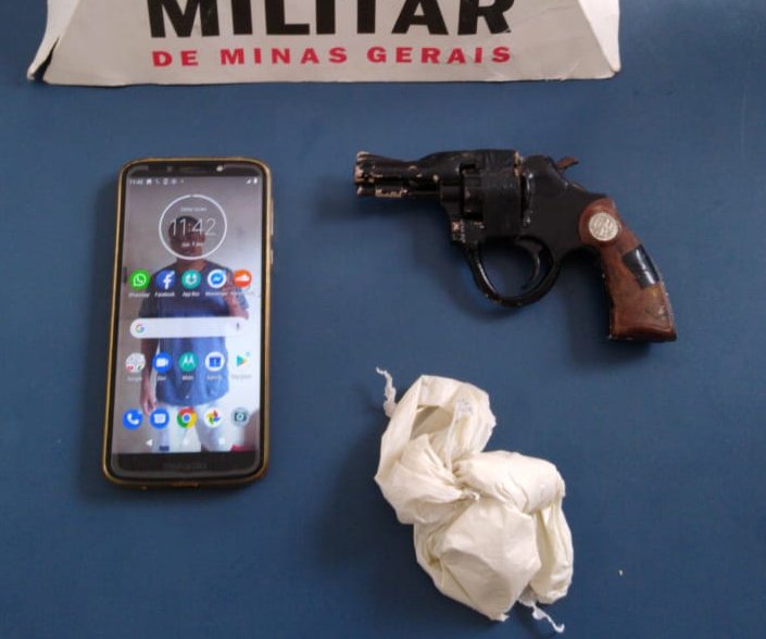 A equipe da PM recebeu denúncias de tráfico de drogas e foi até o local. O jovem foi preso e ainda foi recolhido um revólver calibre 22.