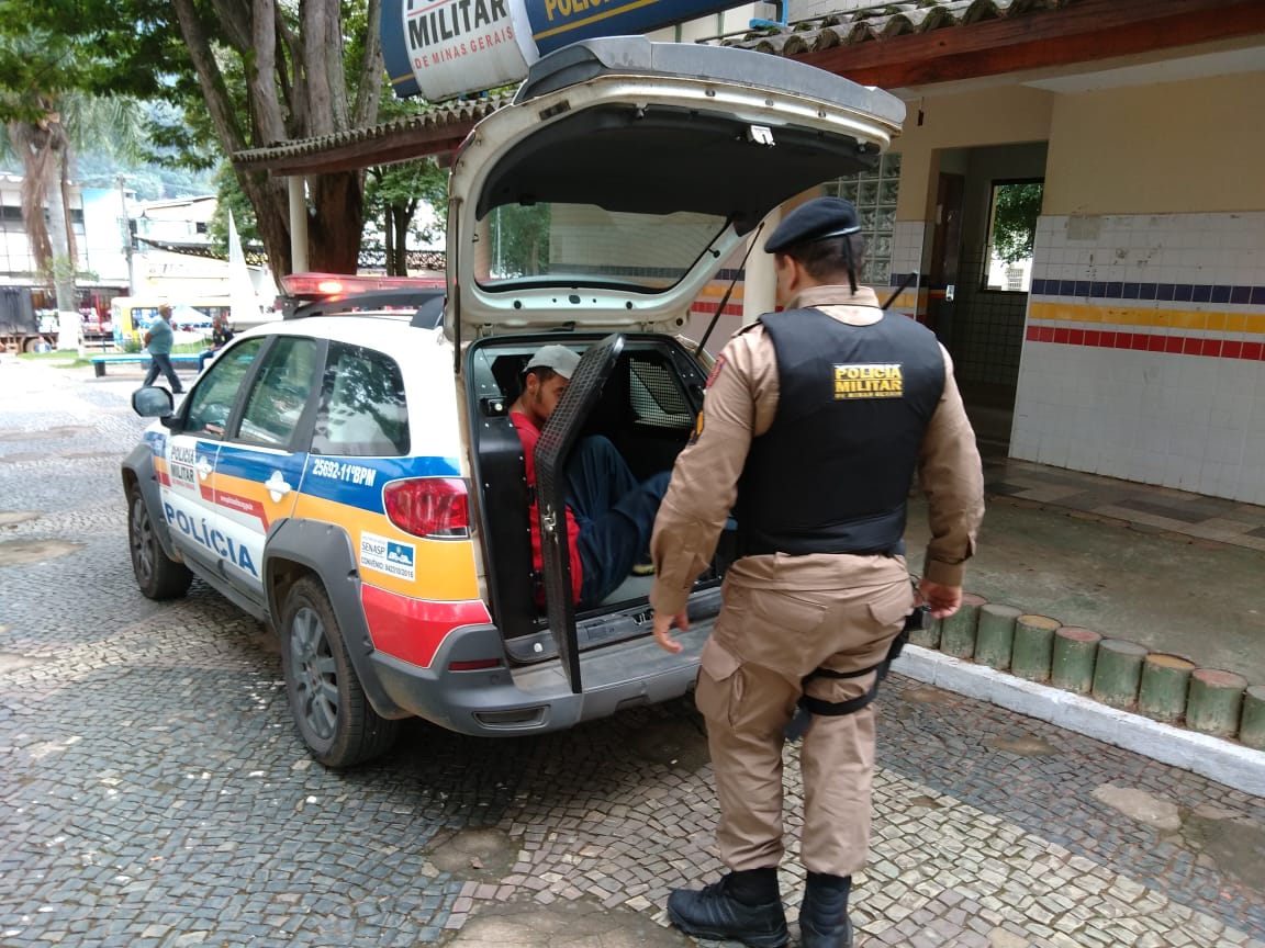 Após verificar as imagens do circuito de segurança, foi possível ver a ação do criminoso. Por volta de 08h45min, o indivíduo foi localizado na Rua Francisco Fialho, escondido atrás de um carro, com sinais claros de haver feito uso de drogas.